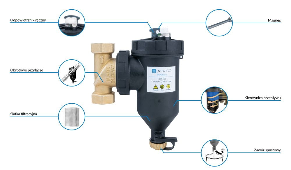 Magnetyczny separator zanieczyszczeń Afriso ADS 160, przyłącza 1" Kvs 6,9 m3/h